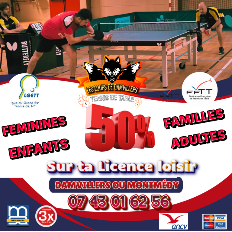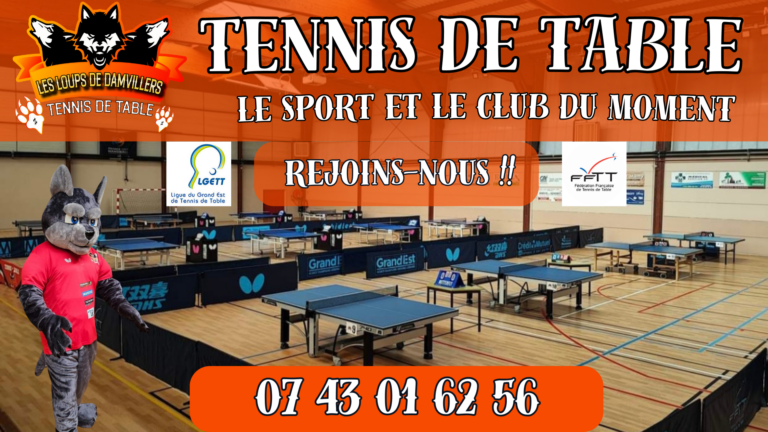 En cette année olympique, quoi de mieux que de se mettre au sport😊. Le club des Loups de Damvillers tennis de table offre à tous, petits et grands, débutants ou confirmés, les meilleures conditions pour se dépenser dans un cadre ludique et convivial. Les « effets » n’auront plus aucun secret pour les licenciés du Club ! Seul, en famille ou avec des amis, toutes les séances sont encadrées par un entraîneur. Avec la licence découverte, profitez de nos créneaux pendant 1 mois gratuitement. Nous prenons les chèques vacances, pass’sports, paiement en ligne en 3X, par carte bancaire etc….. Pour nous contacter : Par Tél : 07 43 01 62 56 Par email : contact@lesloupsdedamvillers.fr Gymnase, rue zierenberg, 55150 DAMVILLERS